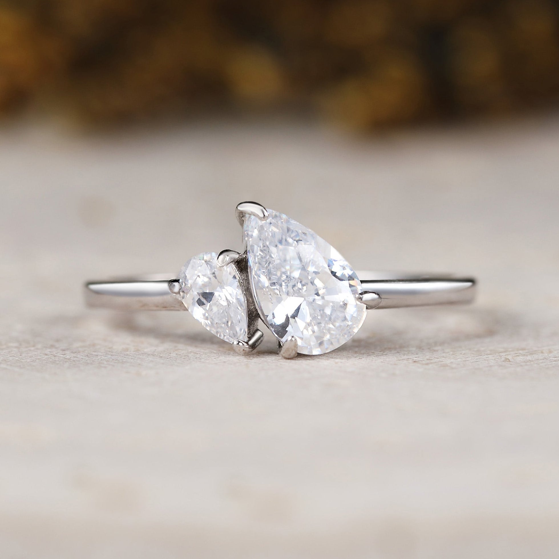 Unique Design Pear Cut Moss Agate Engagment Ring
