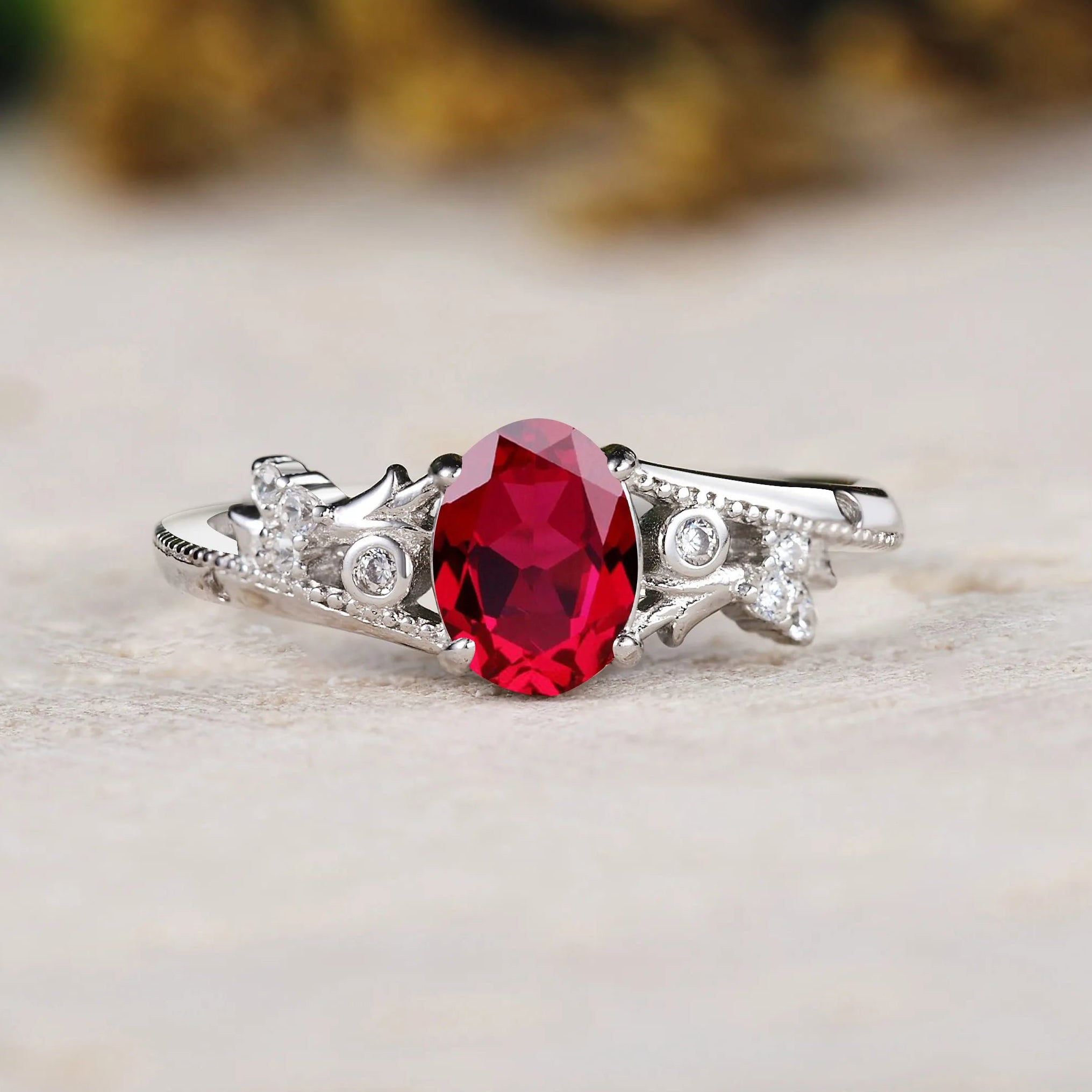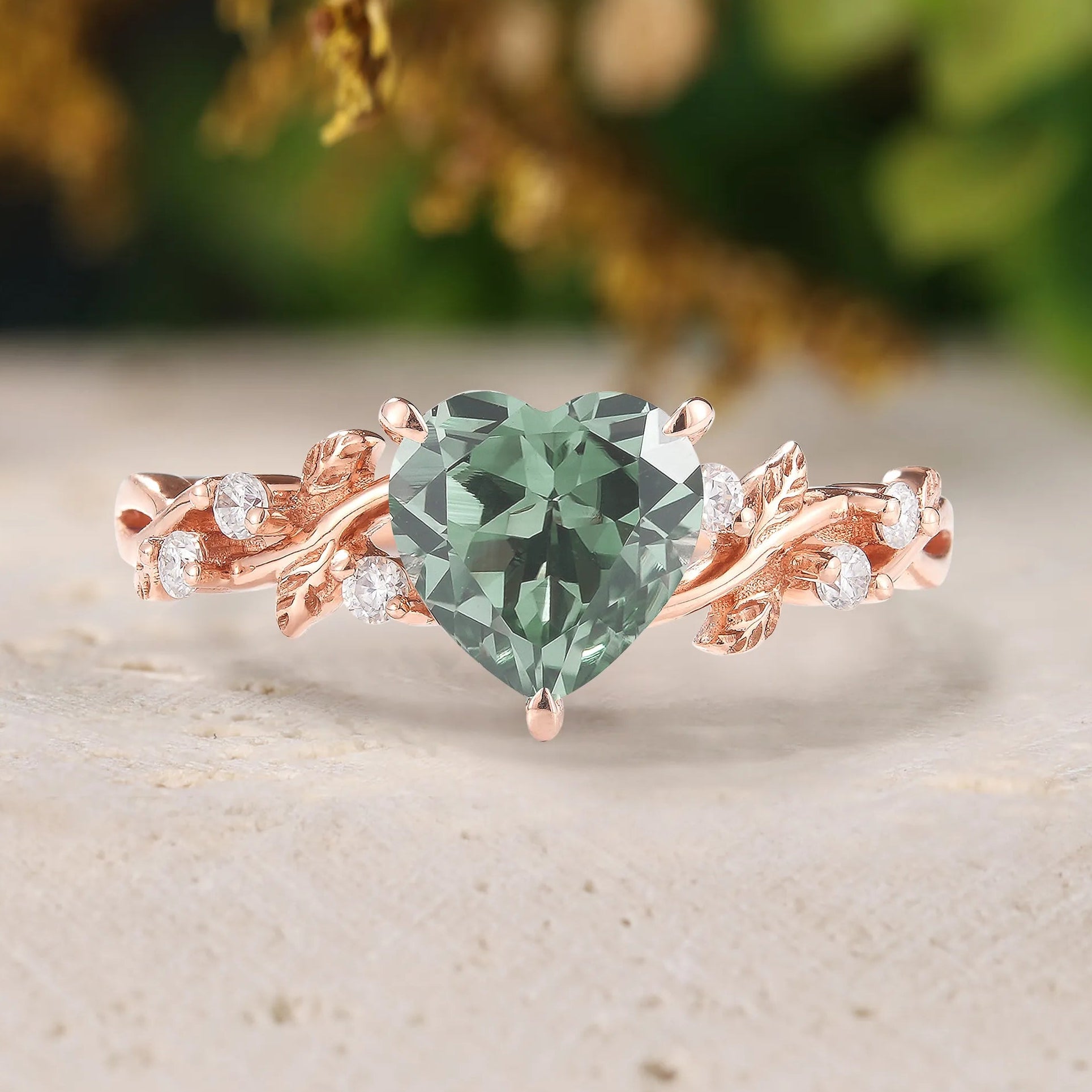 Vintage Milgrain Beaded Edge Engagement Ring – Moss Agate Ring